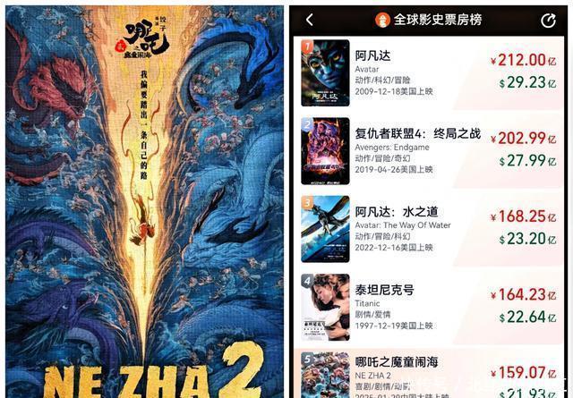 目前,《哪吒之魔童闹海》的内地累计票房已高达154.43亿,加上海外票房和港澳台地区票房,总票房高达159.08亿,位居全球票房第5名,中国电影票房总榜第一名。也许,你不觉得159.08亿票房很高,但是你知道中国电影票房总榜的第二名《长津湖》才57.75亿、第三名《战狼2》才56.94亿吗? 《哪吒之魔童闹海》作为国产电影的天花板,不知又要到什么时候,才会被超越,有网友大胆预测,未来十年内,不会再有国产电影超越《哪吒之魔童闹海》了。甚至有网友表示,《哪吒之魔童闹海》取得的票房记录,至少能在华语电影界能保持20年,就像《阿凡达》那样。